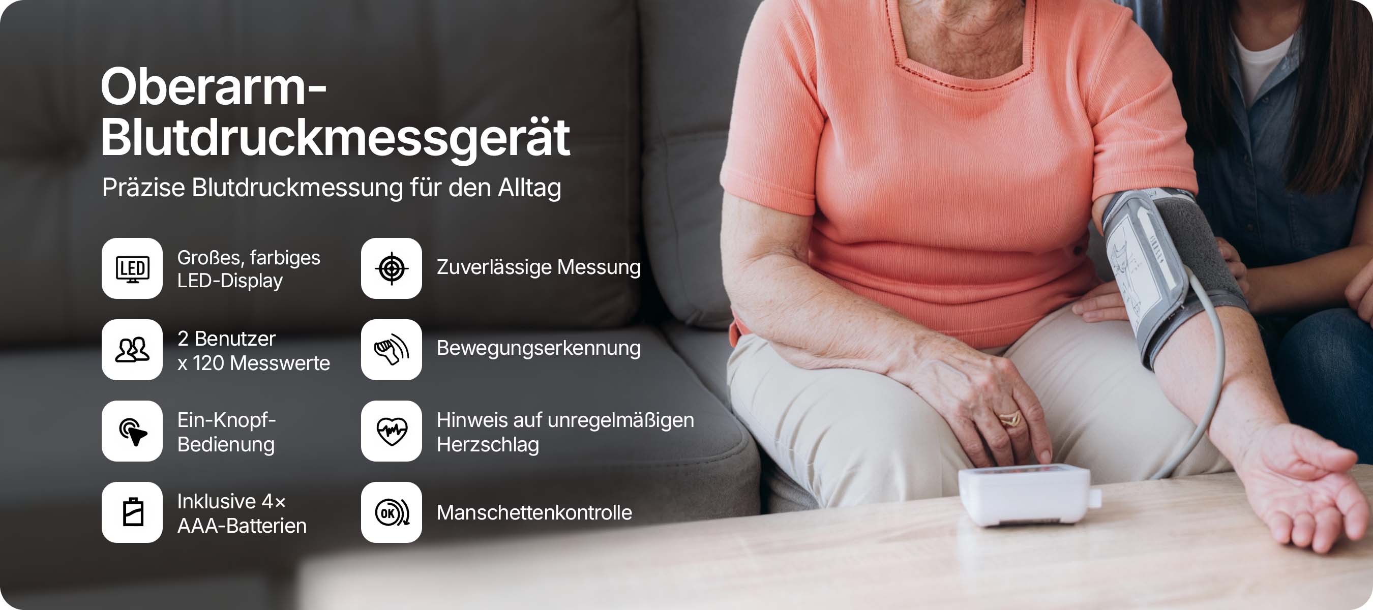 • Bequeme Manschette für alle Armgrößen