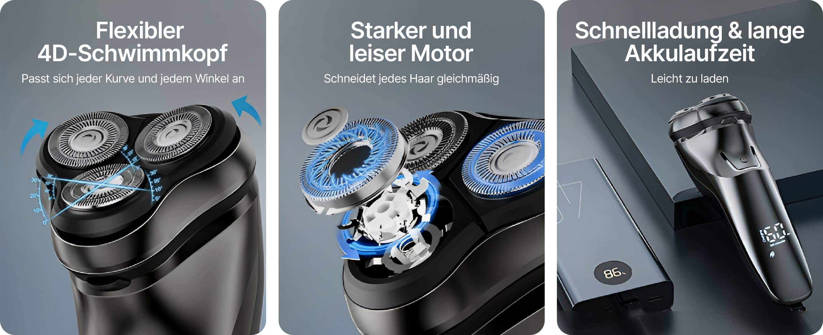 • Präzise Klingen für gründliche Rasur