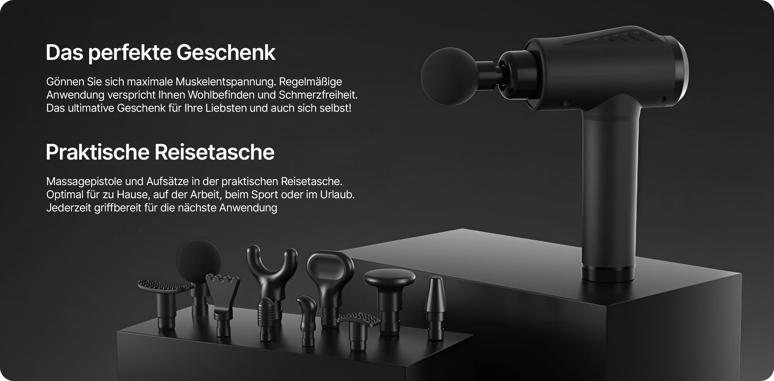 Absolut! Dank ihres kompakten Designs und der langen Akkulaufzeit eignet sich die Massagepistole ideal für den Einsatz unterwegs.